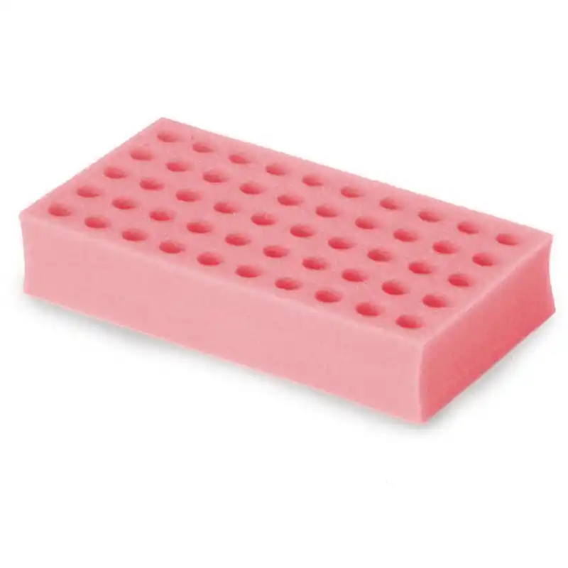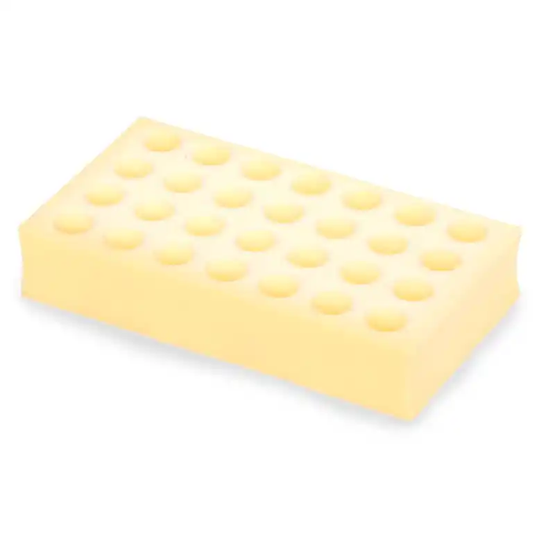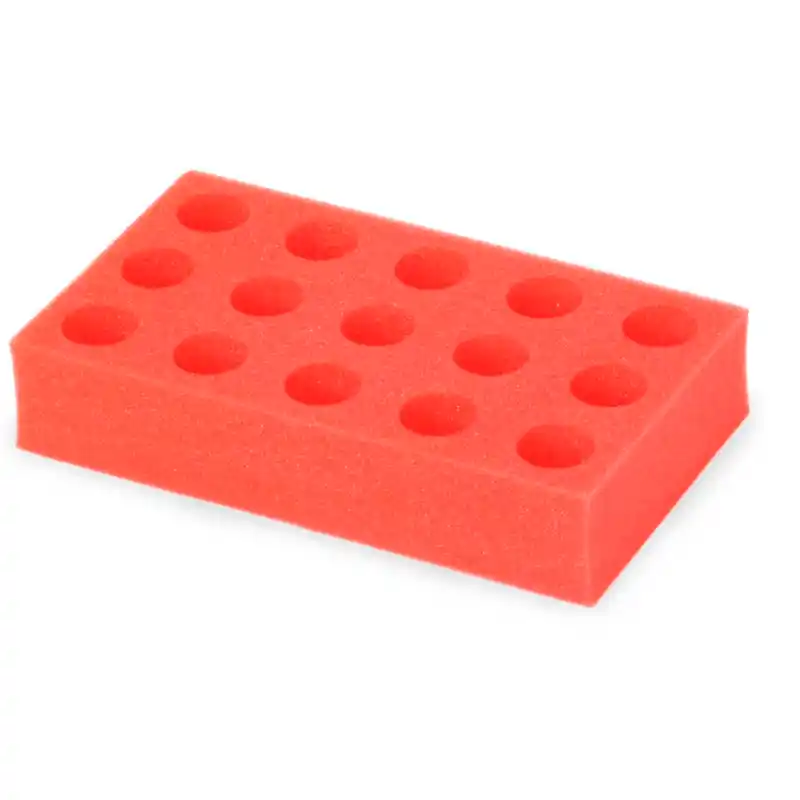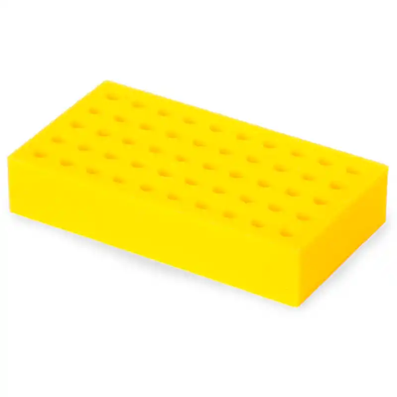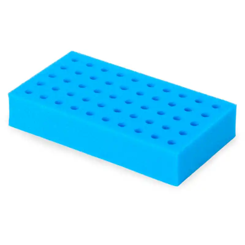 Las gradillas de espuma para tubos de ensayo están diseñadas específicamente para su uso con los agitadores Vórtex multitubos, permitiendo procesar múltiples muestras de manera simultánea con una sujeción firme y estable. Cada gradilla está fabricada en espuma de alta densidad, con alojamientos mecanizados para el diámetro de tubo correspondiente, lo que garantiza un apoyo uniforme y un buen contacto con la bandeja durante la agitación.