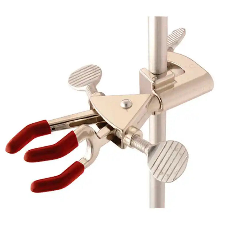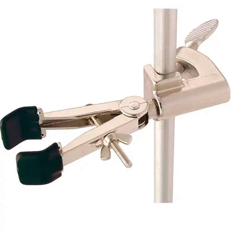 Estas pinzas incorporan varillas de sujeción con soporte incluido para elementos de hasta Ø 19 mm, y cuentan con sujetador integral, lo que permite acoplarlas directamente a un armazón de laboratorio u otros equipos sin necesidad de componentes adicionales. Las abrazaderas fijas disponen de un soporte integrado para facilitar el montaje y mantener el conjunto firme.