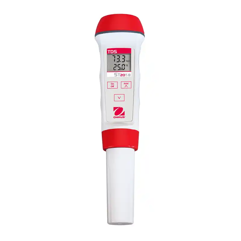 Medidores TDS tipo Pen OHAUS Starter con IP67, autoapagado y sensor intercambiable. Rangos 0–100 mg/L o 0–1000 mg/L, con o sin indicador de temperatura.